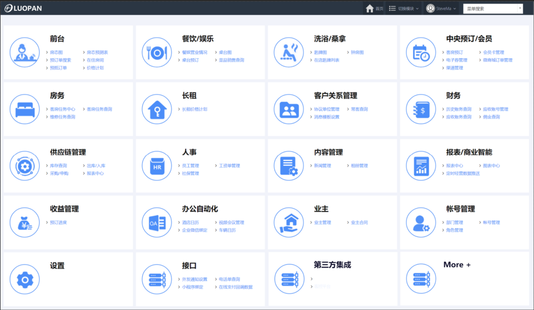 罗盘一体化酒店管理系统面向大住宿行业提供包含PMS、POS、CRS、SCM、SPA、集团管理、直销、会员营销等模块化软件应用的一站式酒店管理解决方案,支持公有云、私有云、区域云、本地化或者混合云多种部署方式,助力酒店实现端到端高效运营,高质量收益增长与卓越的宾客体验。