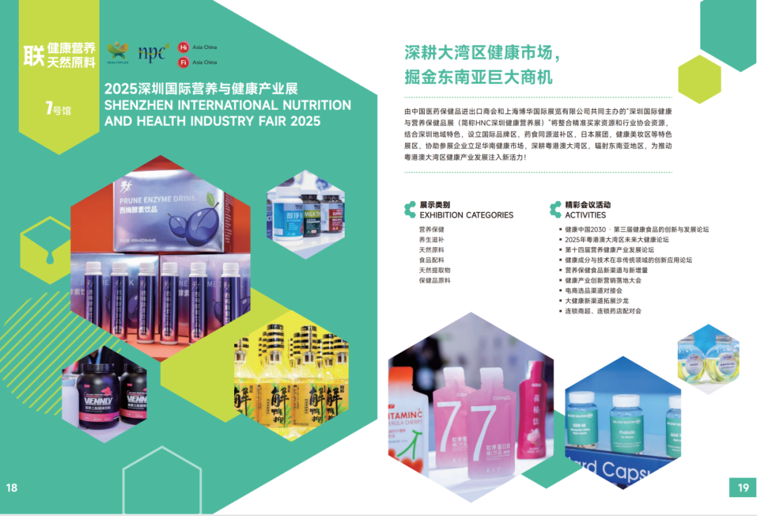 由中国医药保健品进出口商会和上海博华国际展览有限公司共同主办的深圳国际健康与营养保健品展将整合精准买家资源和行业协会资源,结合深圳地域特色,设立国际品牌区,药食同源滋补区,日本展团,健康美妆区等特色展区,协助参展企业立足华南健康市场,深耕粤港澳大湾区,辐射东南亚地区,为推动粤港澳大湾区健康产业发展注入新活力!